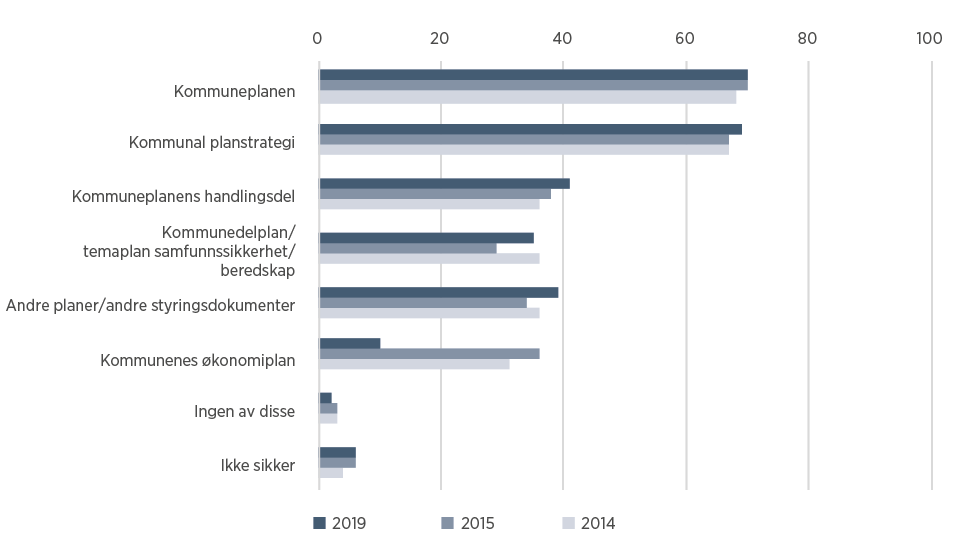 - 41 prosent svarer at kommunen har revidert planen i 2019 og 2018.