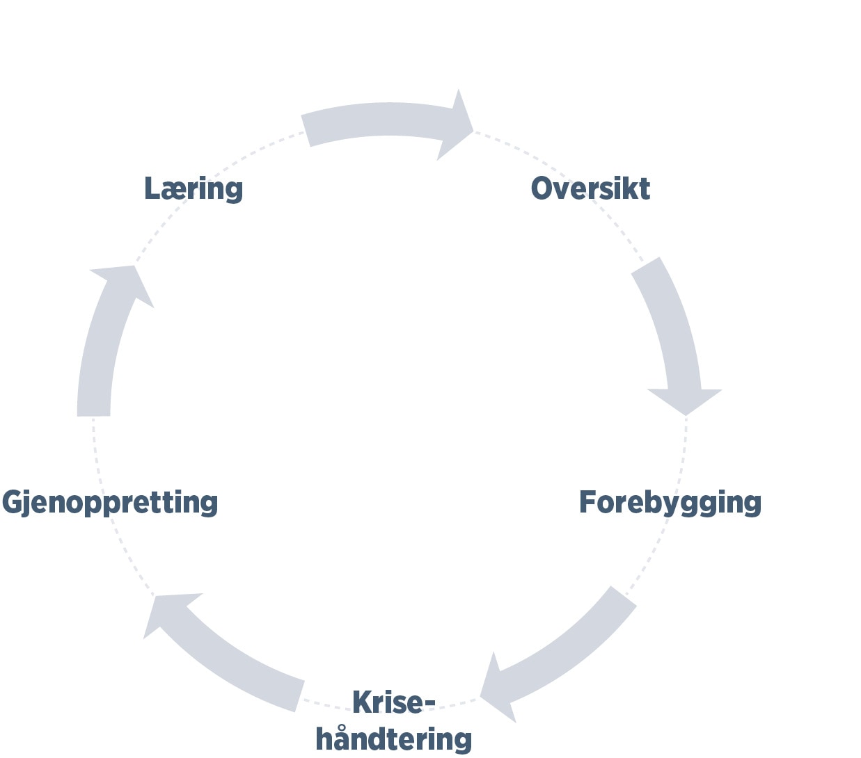 Kommunal beredskapsplikt gir kommunen en rolle som lokal samordner. Samordningsansvaret innebærer at kommunen tar en pådriverrolle og inviterer med andre samfunnssikkerhetsaktører. Samordningsansvaret gjelder for alle oppgavene i samfunnssikkerhetskjeden, fra å ha oversikt over risikoforhold i kommunen, til å tenke forebygging, krisehåndtering, og til gjennoppretting og læring etter hendelser og øvelser (figur 1).
