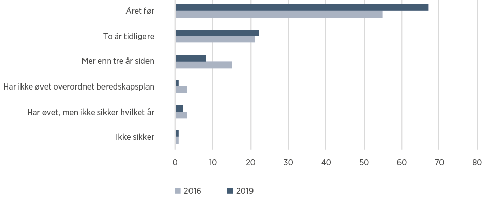 - 30 prosent har ikke øvd og like mange er ikke sikker på om planen er øvd.